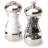 Olde Thompson Monterey peppermill and salt shaker set is the perfect compliment to any kitchen or tabletop setting. Unique brushed metal and acrylic contemporary design. Peppermill has carbon steel grinding mechanism that is fully adjustable from coarse to fine. Matching Salt Shaker.Comes filled with pepper and salt.Measures 4-1/2-inch high.