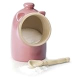 As seen on used by Pat and Gina Neely on "Down Home with the Neelys", this Salt Pig with Spoon is based on old-fashioned salt keepers. This whimsical version includes ears, a curly tail, and a 4-in.long spoon. Made from stoneware with a matte pink glaze, it is 5-in. tall, holds 6-oz. and is dishwasher-safe.