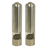 Salt And Pepper Mill Automatic Stainless Steel Pepper Mill is ideal for dinner parties featuring salads and steaks that taste better with fresh-ground pepper and sea salt.Features:Combo pack (2 units).This Electronic pepper mill grinds pepper electronically with the touch of a button.Stainless steel grinder.Fully adjustable from fine to coarse grind.Pepper grinder has a guiding light which turns on automatically while dispensing.Brushed stainless steel finish.How Electronic Pepper Mill works?Just press the button on top and let the mill go to work.The stainless steel grinding mechanism can be adjusted from fine to coarse,and a light will turn on automatically at the bottom when you activate the mill to help with accurate portion control at night.The nut underneath the mill controls the texture: turn clockwise for a finer grind,counterclockwise for coarser.This Stainless steel pepper grinder is powered by 4 AA-sized batteries.Easy and convenient way to enjoy foods with better taste.