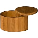 Totally Bamboo's Salt Box-cute, simple and easy to use.The Salt Box has an easy slide-off top that rotates a full 360 degrees and has enough space to store your favorite spices and other items.Wide opening allows plenty of room for larger hands or spoons to reach in to grab your favorite seasoning. No stains or paint are used to create the Salt Box's scrumptious Honey shade. This color is created in a very specialized heating process which caramelizes the natural sugar in the wood; it is permanent and will not fade or wash out.Care: wash with warm water and mild detergent and occasionally wipe with mineral oil (Do not clean in the dishwasher). An Ecological wonder, Bamboo is a grass that grows to a harvestable height of 60 feet in 3 to 5 years.It has an extensive root system that continually develops new shoots thus not requiring replanting making it an incredible self-renewing resource and a brilliant alternative to the wide spread clear cutting of our world's hard wood forests.Do the world a favor- Do Bamboo.