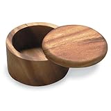 Store your sea or kosher salt in this compact salt cellar. Lids slides open for easy access. Attractive enough to leave on your countertop. Made from environmentally friendly Acacia wood that is farmed throughout Southeast Asia. This pod bearing tree is known for it's rich, dark colors that range from gold to chocolate brown.