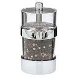 03702This is a combination mill with a clear acrylic body and chrome bottom. It dispenses salt through the top and grinds pepper through the bottom. Features: -Acrylic body -Metal accents -Salt shakes from the top -Three pepper grind settings -Dimensions: 4.625" -Made in the USA