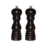 PEUGEOT: France, since 1810.Peugeot mills are renowned by chefs and gourmet cooks the word over for the consistent grind results they produce, their incredible resilience and proven reliability.Compromise is not a word that fits into the Peugeot vocabulary.For each spice, there is one - and only one - Peugeot grinding mechanism: peppercorns; coarse dry salt; chilies; herbs and spices; wet salts; and nutmeg.Add the coffee mechanism, which started it all, and there are seven unique Peugeot mechanisms.Each is designed to derive the most flavor and greatest aroma from its complementary spice.Aesthetically pleasing, Peugeot mills deliver the height of quality, durability, reliability and innovation; making these mills the ones to which all others are compared. The high quality beech wood used in Peugeot mills is grown, harvested, dried, shaped and finished in France. For Paris u'Select mills, the grind is adjusted by turning the ring at the bottom of the mill. Turning the ring in one direction makes a finer grind; turning in the other makes it coarser. Once the grind size is set, it will stay in place until the user changes it. The pepper mill is equipped with Peugeot's legendary pepper grinding mechanism.Made of case-hardened steel, it has received additional treatment against wear and corrosion.Its double-row of helix-shaped claws grab and crack each peppercorn, before drawing it down to the teeth for the perfect grind. The salt mill is equipped with Peugeot's exceptional salt grinding mechanism: it is unlike anything else on the market.Its two ribbed plates are made from a stainless steel blend that offers resiliency, rigidity and resistance to corrosion from dry salts.When the mechanism is activated, the ribs work to twist and fracture each salt crystal to the desired size. Both salt and pepper mills are 7-inches tall with a chocolate brown varnish.